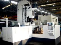 主減速器殼三軸鏜孔車端面機(jī)床,本機(jī)床是為粗加工、半精加工主減速器殼三孔及車削主減速器殼主錐端面而設(shè)計的專用機(jī)床。本機(jī)床采用立臥復(fù)合式三面結(jié)構(gòu),左右端各布滑臺和鏜頭,用于兩端孔的加工。立頭采用西德標(biāo)準(zhǔn)的DSS系列雙向刀盤鏜車頭,用于主錐端面孔加工,鏜車頭主電機(jī)采用變頻調(diào)速,以滿足鏜大小孔時切削速度的變化。中間采用數(shù)控滑臺,滑臺上安裝液壓夾具,以適應(yīng)不同品種的偏置距。